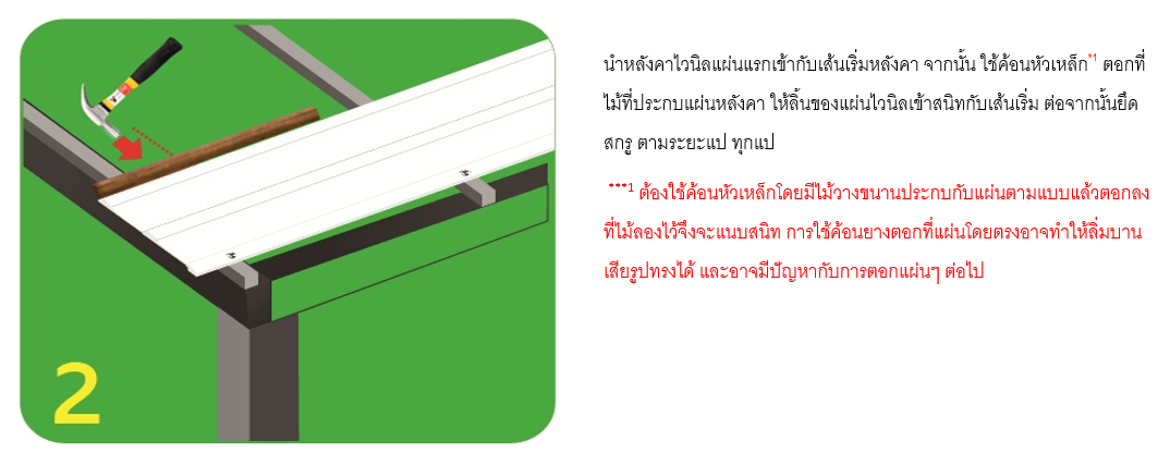 วิธีใช้ค้อนหัวเหล็กตอกแผ่นไวนิลท้องเรียบลายไม้แทนค้อนยาง