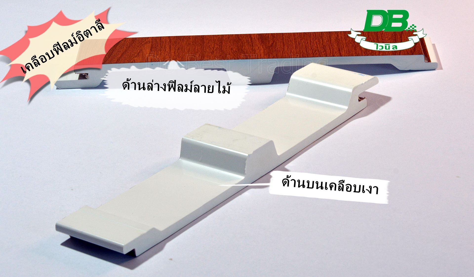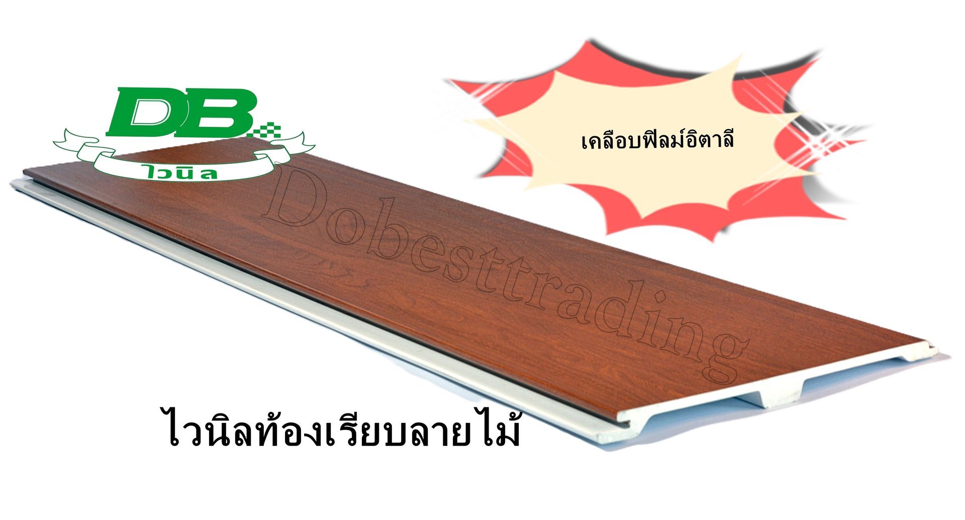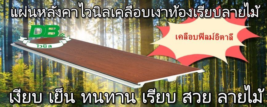 แผ่นกันสาด / หลังคาไวนิลเคลือบเงาท้องเรียบลายไม้ยี่ห้อDB